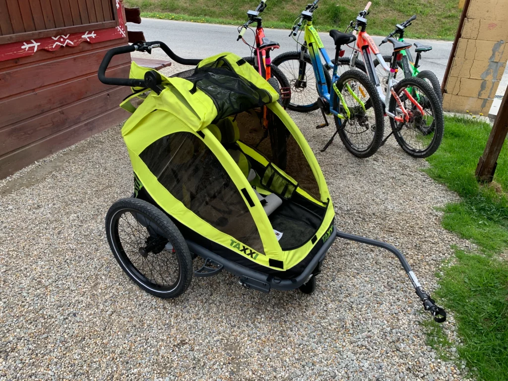 Pripnite si za niektorý z naších elektrobicyklov (Retro e-bike aj hosrký “MTB” e-bike) detský vozík a vyrazte na niektorú z cyklotrás v okolí. Vaše deti sa budú pohodlne viezť zatiaľ čo Vy si budete vychutnávať pohľad na okolitú prírodu.